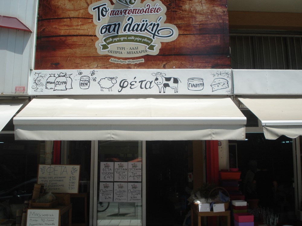 Ιδιοκτήτης του «παντοπωλείου στη λαϊκή»είναι ο κ. Αλέξανδρος Μέρμηγκας, ο οποίος μας εξομολογείται πως «εγώ εμπορεύομαι και πουλάω μόνο τοπικά προϊόντα Τρικαλινών παραγωγών, κυρίως φέτα, λάδι, όσπρια και μπαχάρια. Η ποιότητα ενός προϊόντος είναι το παν κι ο καταναλωτής θα το επιλέξει αν είναι και σε καλή τιμή, γι’ αυτό και όλα πια είναι θέμα προσφορών. Ο πελάτης πέρα από το προϊόν ζητάει μια καλή εξυπηρέτηση, μια ζεστή καλημέρα, ένα χαμόγελο. Αυτή είναι η διαφορά ανάμεσα σε ένα παραδοσιακό μπακάλικο και σ’ ένα απρόσωπο σούπερ μάρκετ. Σαφώς και δουλεύουμε στα μαγαζιά μας με τεφτέρι, υπάρχουν πελάτες γνωστοί και ζητούν να πληρώνουν όταν πληρώνονται κι αυτοί. Είμαστε υποχρεωμένοι να κάνουμε τέτοιες ευκολίες, αλλιώς αν δεν τον εξυπηρετήσουμε τον πελάτη έτσι, κινδυνεύουμε να τον χάσουμε».
