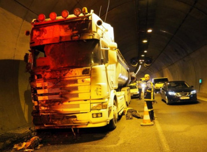 Η κυκλοφορία διεκόπη και μέσα στο τούνελ την ώρα της κατάσβεσης ήταν μόνο δύο ακόμα νταλίκες που είχαν σταματήσει για να προσφέρουν βοήθεια.