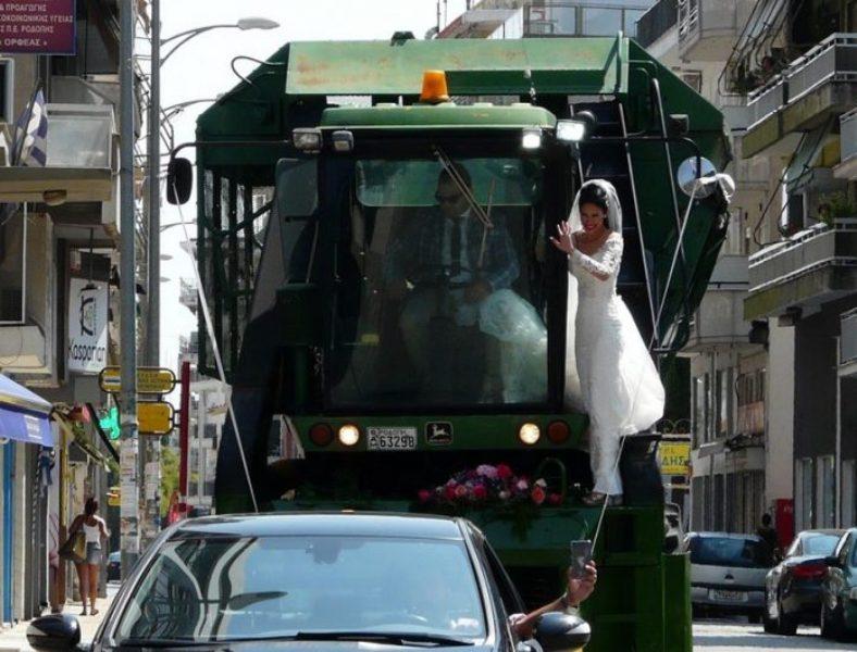 Φόρο τιμής στην αγροτιά απέτισε μία νύφη από την Κομοτηνή, η οποία πήγε στο γάμο της όχι με αυτοκίνητο, ούτε με λιμουζίνα, ούτε καν με άμαξα, αλλά με βαμβακοσυλλεκτική μηχανή!