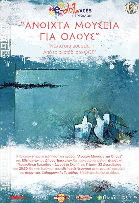 *(λόγω συμμετοχής της Δημοτικής Φιλαρμονικής Τρικάλων σε εκδηλώσεις της πόλης, η Δημοτική Πινακοθήκη δεν θα λειτουργήσει τις πρωινές ώρες στις 6, 24, 28, 30 Δεκεμβρίου 2016 και 06 Ιανουαρίου 2017. Επίσης θα παραμείνει κλειστή στις 25 Δεκεμβρίου 2016 και 1 Ιανουαρίου 2017).
