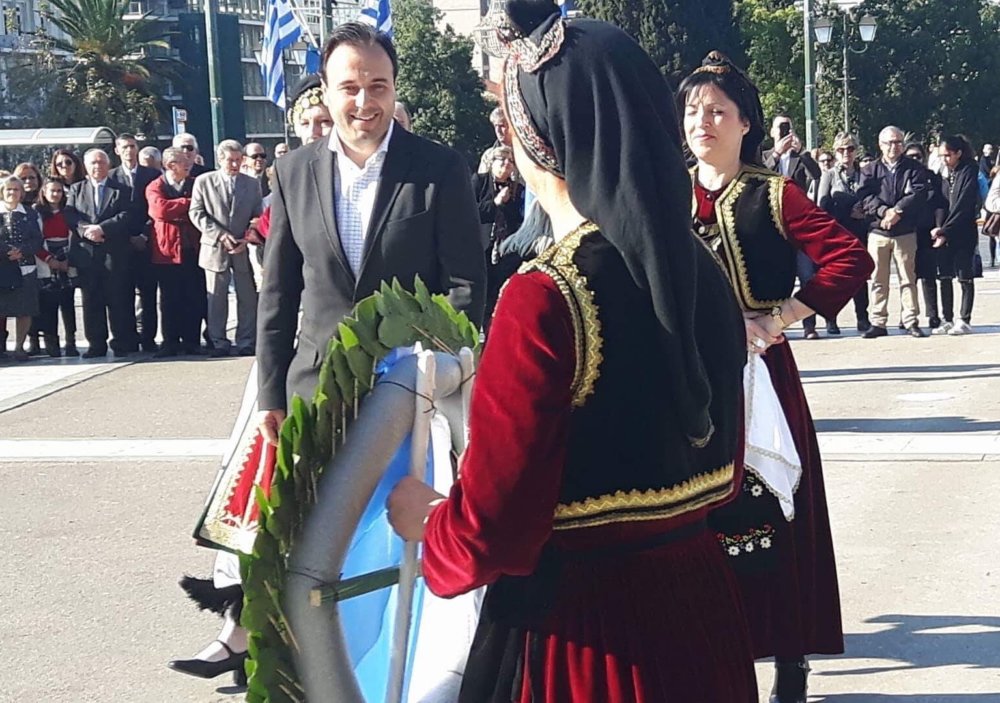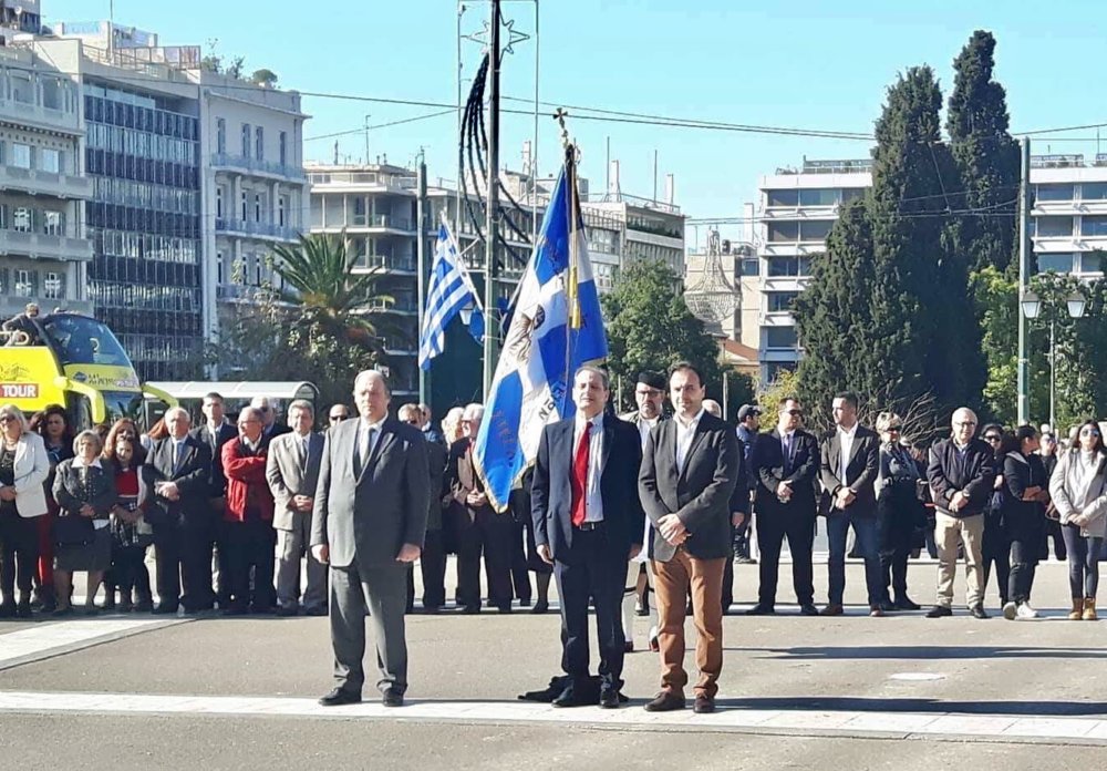 Στη συνέχεια σχηματίστηκε πομπή, συνοδεία της Φιλαρμονικής του Δήμου Αθηναίων, που κατευθύνθηκε στο Μνημείο του Άγνωστου Στρατιώτη, όπου έγινε κατάθεση στεφάνων από τους επισήμους.