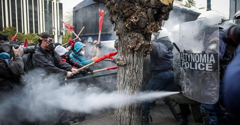 Καταγγέλλουμε την προκλητική καταστολή της αστυνομίας, σύμφωνα με τις κυβερνητικές οδηγίες. Οι διαδηλωτές βρέθηκαν αντιμέτωποι ξανά με αστυνομικό φραγμό, ενώ δέχθηκαν ξανά κτυπήματα με κλομπ, ψεκασμό με χημικά στο πρόσωπο(!) και βομβίδες κρότου-λάμψης πάνω στα σώματα των διαδηλωτών!