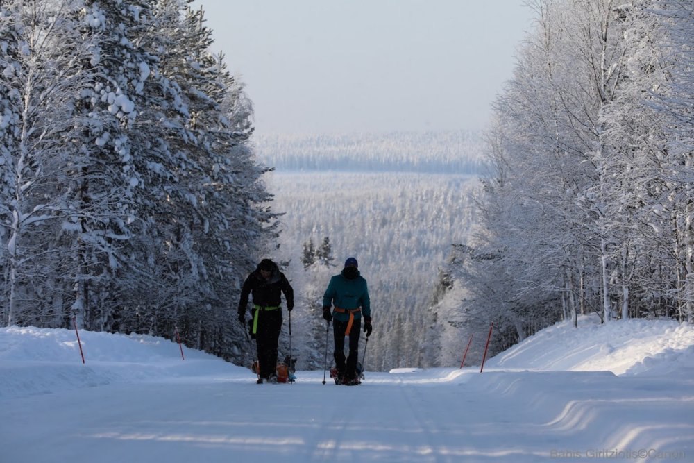 Οι αθλητές σέρνουν ένα έλκηθρο με τον απαραίτητο υποχρεωτικό εξοπλισμό που θα χρησιμοποιήσουν σε περίπτωση εγκατάλειψης και ακραίων καιρικών συνθηκών.