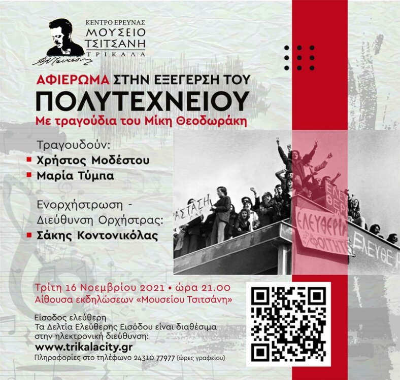 Πολυτεχνείου το 1973, το Μουσείο Τσιτσάνη τιμά την 48η επέτειο. Ταυτοχρόνως, είναι η
