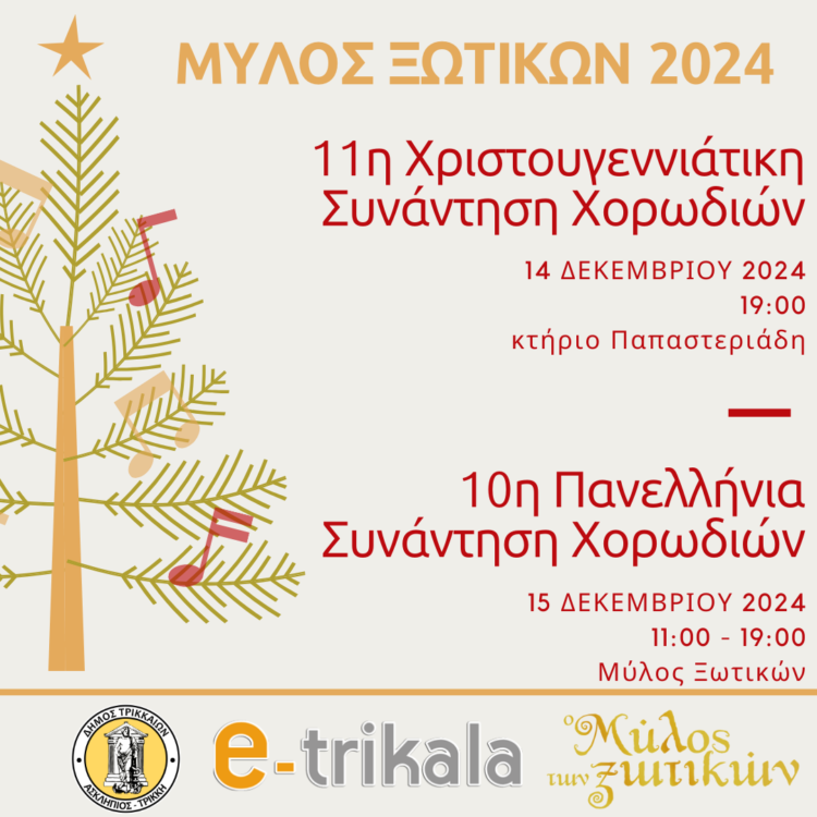 Για μια ακόμη χρονιά οι χορωδιακές συναντήσεις συνεχίζονται στον Μύλο των Ξωτικών. Ο Δήμος Τρικκαίων προσκάλεσε χορωδίες από διάφορα μέρη της χώρας, οι οποίες θα μετάσχουν στη 10η Πανελλήνια Συνάντηση Χορωδιών και την 11η Χριστουγεννιάτικη Συνάντηση Χορωδιών.