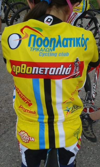 Ο Ποδηλατικός Σύλλογος Τρικάλων στην φανέλα του φέρει: ΟΡΘΟΠΕΤΑΛΙΑ (ποδηλατικό κατάστημα Λάρισας), ΚΑΛΛΙΑΓΡΑΣ (κρέατα), STAVRAKIS (ελαστικά), VOLVO service (Σκορδάς – Τζέκος), PROMIST (ασφάλειες), Δ.ΓΕΩΡΓΑΛΗΣ (πρακτορείο ΟΠΑΠ), ΒΙΟΛΑΝΤΑ (μπισκότα), VO2MAX (καταφύγιο Κόζιακα), ΜΑΡΑΒΑΣ (κρέατα), Μιχαλίτση Μαρία (μονωτικά – οικοδομικά – υλικά) και ΕΦΗ ΠΑΛΑΤΟΥ (φυσιοθεραπεία – βελονισμός).