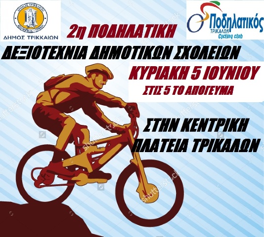 Ο Ποδηλατικός Σύλλογος Τρικάλων και ο Δήμος Τρικκαίων συνδιοργανώνουν για δεύτερη χρονιά την δεξιοτεχνία, βασιζόμενοι στην επιτυχία που είχε η περσινή διοργάνωση. Την Κυριακή στις 5 το απόγευμα ανοίγει η γραμματεία και αρχίζουν οι εγγραφές (δηλώσεις συμμετοχής). Στις 6μμ γίνεται η έναρξη της δεξιοτεχνίας. Προσοχή για να συμμετάσχει ένα παιδί θα πρέπει πρώτα να δηλώσει την συμμετοχή του (ονοματεπώνυμο – τάξη – σχολείο) παρουσία του κηδεμόνα. Η συμμετοχή στην δεξιοτεχνία είναι δωρεάν για όλα τα παιδιά. Περισσότερες πληροφορίες στην εκδήλωση στο facebook του Π.Σ.ΤΡΙΚΑΛΩΝ: https://www.facebook.com/events/250454948660893/ και στα δημοτικά σχολεία.