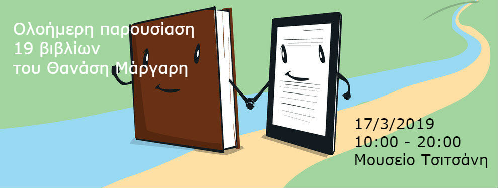 - Ούτε ένα, ούτε δύο, ούτε τρία! 19 βιβλία παρουσιάζει ο τρικαλινός Επιστημονικός Συνεργάτης του Πανεπιστημίου Θεσσαλίας Αθανάσιος Ι. Μάργαρης στο Μουσείο Τσιτσάνη! Πρόκειται για μια ξεχωριστή, διαφορετική στη μορφή και σαφώς στο περιεχόμενο