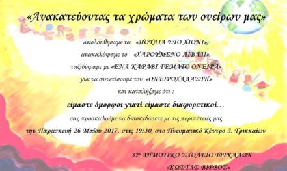 Εκδήλωση με θέμα τη διαφορετικότητα διοργανώνει το 32ο Δημοτικό Σχολείο Τρικάλων «ΚΩΣΤΑΣ ΒΙΡΒΟΣ»