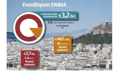 3,2 δισ. ευρώ θα εισπράξει το Δημόσιο από τον ΕΝΦΙΑ το 2017