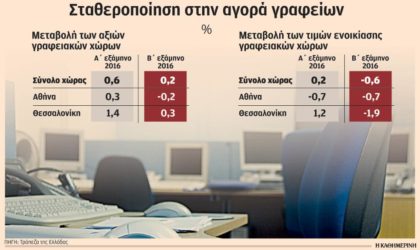 Σταθεροποιητική ήταν η πορεία των τιμών των επαγγελματικών ακινήτων (γραφεία, καταστήματα) κατά τη διάρκεια του 2016, γεγονός που πιστοποιείται και...