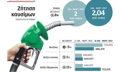 Απρόσμενη μείωση παρουσίασε η ζήτηση καυσίμων στην εγχώρια αγορά τον Απρίλιο, με το πετρέλαιο κίνησης να δίνει τον τόνο, καταγράφοντας...