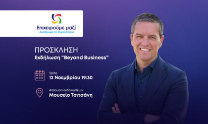 Σας προσκαλούμε στην εκδήλωση “Beyond Business” που διοργανώνει ο συνδυασμός μας «Επιχειρούμε Μαζί, Αλλάζουμε το Επιμελητήριο», όπου κορυφαίοι ομιλητές θα...