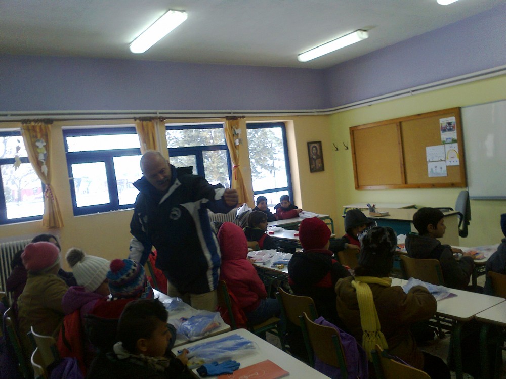 Τα προσφυγόπουλα που έφτασαν σήμερα , παρά τις αντίξοες καιρικές συνθήκες , για να ξεκινήσουν τη φοίτησή τους  στο 25ο Δημοτικό Σχολείο Τρικάλων  καλωσόρισαν εκπαιδευτικοί που συσπειρώνονται στο ΠΑΜΕ.  Έδειξαν έτσι έμπρακτα την αλληλεγγύη τους  , που συνδυάστηκε με παράδοση   ειδών  γραφικής ύλης (τετράδια, μολύβια , μαρκαδόρους κα) , που συγκέντρωσαν το προηγούμενο διάστημα.