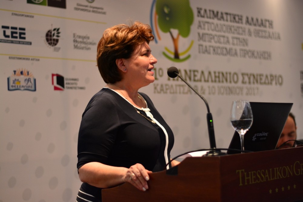 Έπειτα, η Πρόεδρος της Ειδικής Μόνιμης Επιτροπής της Προστασίας του  Περιβάλλοντος και Βουλευτής ΣΥΡΙΖΑ Χαλκιδικής,  κ. Ιγγλέζη Αικατερίνη χαιρέτισε την πρωτοβουλία της ΠΕΔ Θεσσαλίας  και έθεσε τις απόψεις της για το καίριο φαινόμενο της Κλιματικής Αλλαγής.