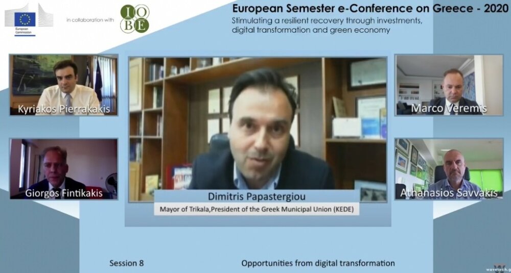 Τρία σημεία για τα νέα δεδομένα που προκύπτουν στην ελληνική κοινωνία από τον ψηφιακό μετασχηματισμό της, κατέθεσε ο Δημήτρης Παπαστεργίου, πρόεδρος της ΚΕΔΕ και Δήμαρχος Τρικκαίων, σε ευρύ διαδικτυακό διήμερο συνέδριο. Με συνδιοργανωτές την Ευρωπαϊκή Επιτροπή και το ΙΟΒΕ (Ιδρυμα Οικονομικών και Βιομηχανικών Ερευνών, υο συνέδριο είχε ως τίτλο «Ευρωπαϊκό Εξάμηνο Ηλεκτρονικό Συνέδριο για την Ελλάδα: Ενίσχυση της ανάκαμψης μέσω επενδύσεων, ψηφιακού μετασχηματισμού και πράσινης οικονομίας».