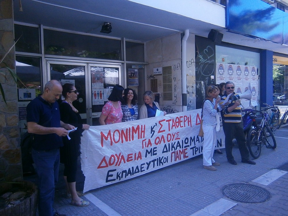 Παράσταση διαμαρτυρίας ενάντια στην τροπολογία αλλαγής του τρόπου πρόσληψης αναπληρωτών, στο κλείσιμο νηπιαγωγείων, στην κατάργηση τμημάτων ένταξης.
