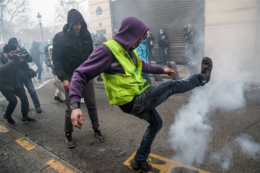 “Μαζί όλοι μαζί”, φώναζαν τα «Κίτρινα Γιλέκα» στους αστυνομικούς, που σε πολλές περιοχές της γαλλικής πρωτεύουσας βγήκαν στο δρόμο και έφιπποι.