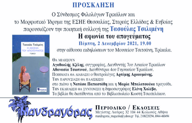 την ποιητική συλλογή της Τασούλας Τσιλιμένη, «Η αφωνία του