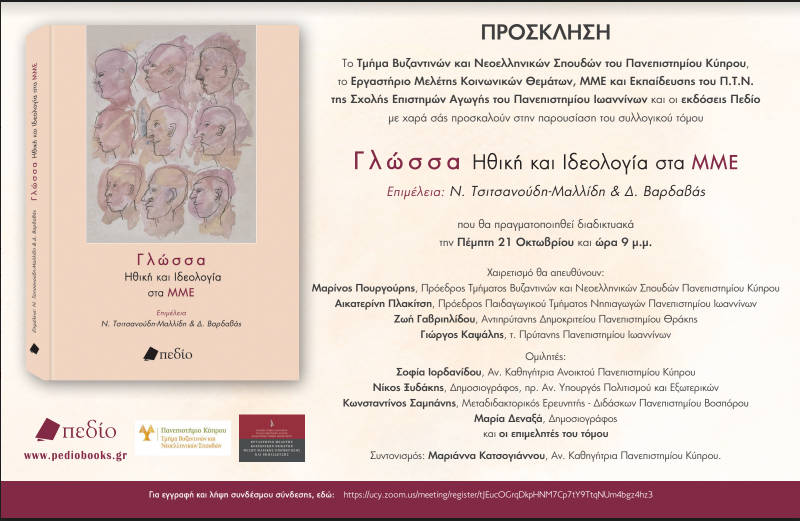 οι εκδόσεις Πεδίο, οργανώνουν εκδήλωση παρουσίασης του συλλογικού τόμου «Γλώσσα,