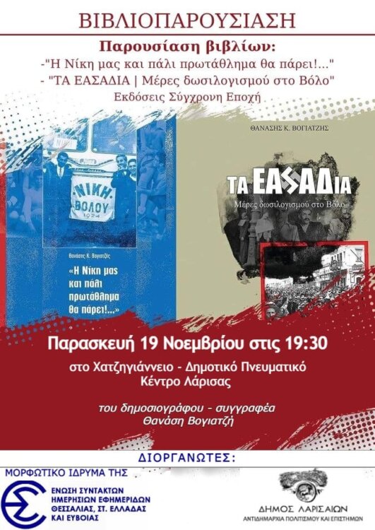 Παρουσίαση βιβλίων του δημοσιογράφου Θανάση Βογιατζή στη Λάρισα