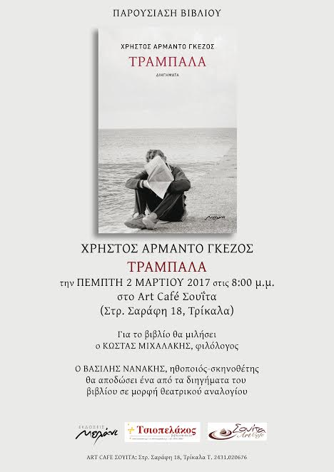 Την Πέμπτη 2 Μαρτίου 2017, στις 8.00μ.μ στο Art Café Σουίτα (Στρατηγού Σαράφη 18, Τρίκαλα)