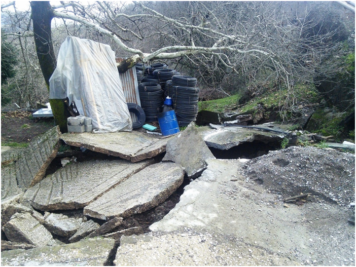Σ’ αυτό το σημείο πρέπει να αναφέρουμε πως η έλλειψη των γεωτεχνικών μελετών, οι οποίες θα μεριμνούσανε για την ασφαλή και απρόσκοπτη διέλευση του νερού εκτός των σπιτιών και εκτός τους δρόμου, σε συνδυασμό με την λαθροϋλοτομία πάνω από την περιοχή της κατολίσθησης, συνέτειναν στην δημιουργία αυτού του φυσικού φαινομένου.