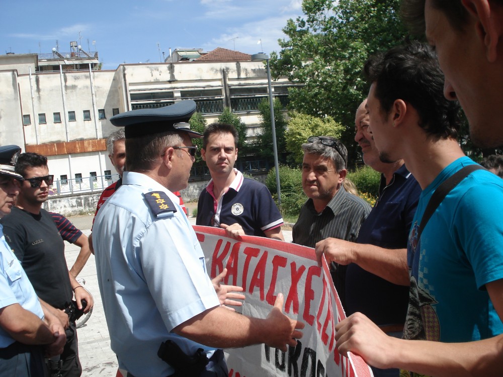 Ένταση δημιουργήθηκε προς στιγμήν σήμερα νωρίς το απόγευμα στο Δικαστικό μέγαρο Τρικάλων, όταν αστυνομικές δυνάμεις εμπόδισαν μέλη του κινήματος «Δεν πληρώνω» αλλά και μέλη φορέων και οργανώσεων, που είχαν συγκεντρωθεί από νωρίς στο προαύλιο του Δικαστικού μεγάρου για να αποτρέψουν τον πλειστηριασμό, να εισβάλλουν με πανό που κρατούσαν στο εσωτερικό των δικαστηρίων, όπου επρόκειτο να διεξαχθεί πλειστηριασμός πρώτης κατοικίας Τρικαλινού επαγγελματία για οφειλές στην εφορία. Τελικά και ύστερα από διαβουλεύσεις οι αστυνομικοί επέτρεψαν στους διαμαρτυρόμενους να μπούνε στην αίθουσα όπου θα διεξαγόταν ο πλειστηριασμός, οι οποίοι παρέμειναν εκεί αρκετή ώρα για να εμποδίσουν τη διεξαγωγή του σε περίπτωση που εμφανιζόταν κάποιος αγοραστής. Τελικά μέχρι τις 5 μ.μ. δεν εμφανίστηκε κάποιος και έτσι μετά από λίγο αποχώρησαν ήσυχα από το χώρο των δικαστηρίων.