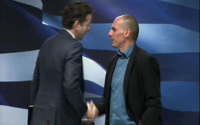 Η ελληνική κυβέρνηση δεν προτίθεται, τουλάχιστον ως πρώτη πράξη, να ζητήσει παράταση του προγράμματος που απορρίπτει, ούτε να συνεχίσει τη συνεργασία με την τρόικα, «μια σαθρά δομημένη Επιτροπή, εντεταλμένη για τον έλεγχο του προγράμματος που απορρίπτουμε» είναι οι ειδήσεις που προέκυψαν από τις απαντήσεις του υπουργού Οικονομικών Γ.Βαρουφάκη στην κοινή συνέντευξη Τύπου με τον πρόεδρο του Eurogroup Γ.Ντάισελεμπλουμ, το ύφος του οποίου πρόδιδε προβληματισμό -αν όχι εκνευρισμό.