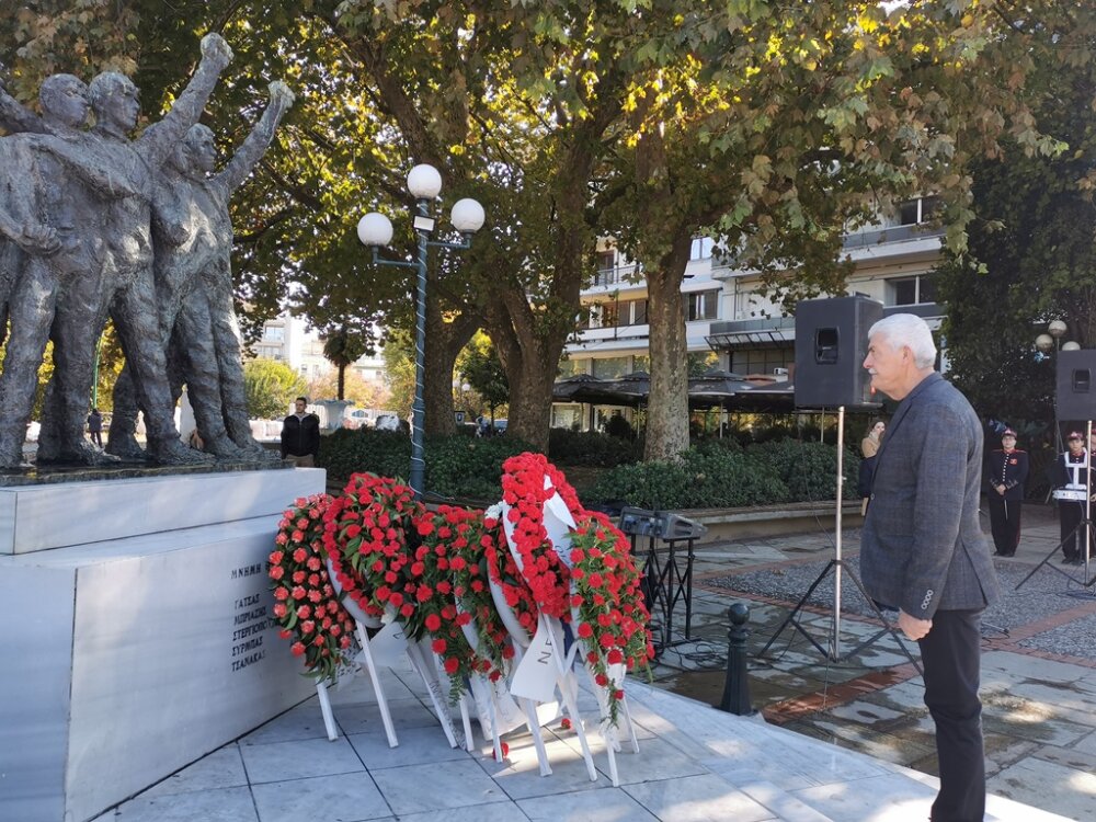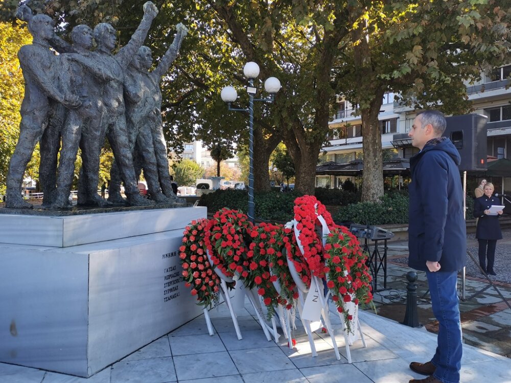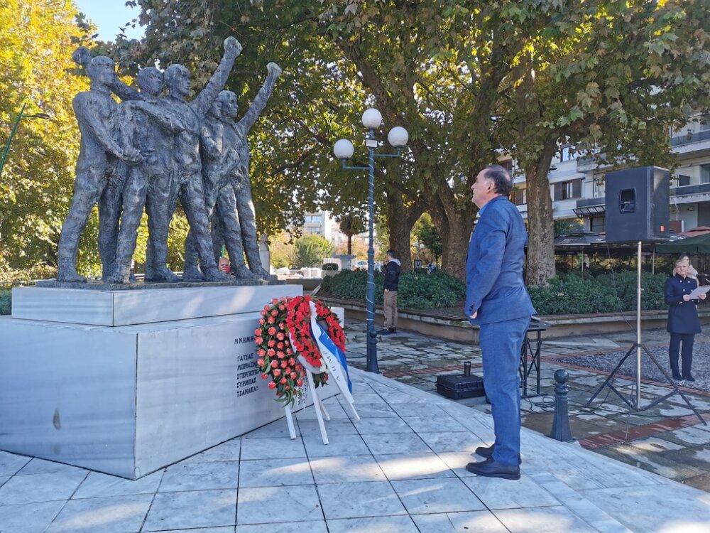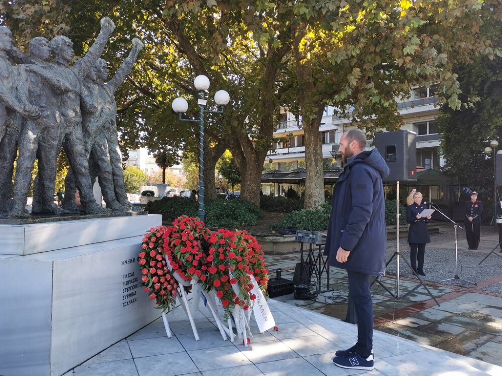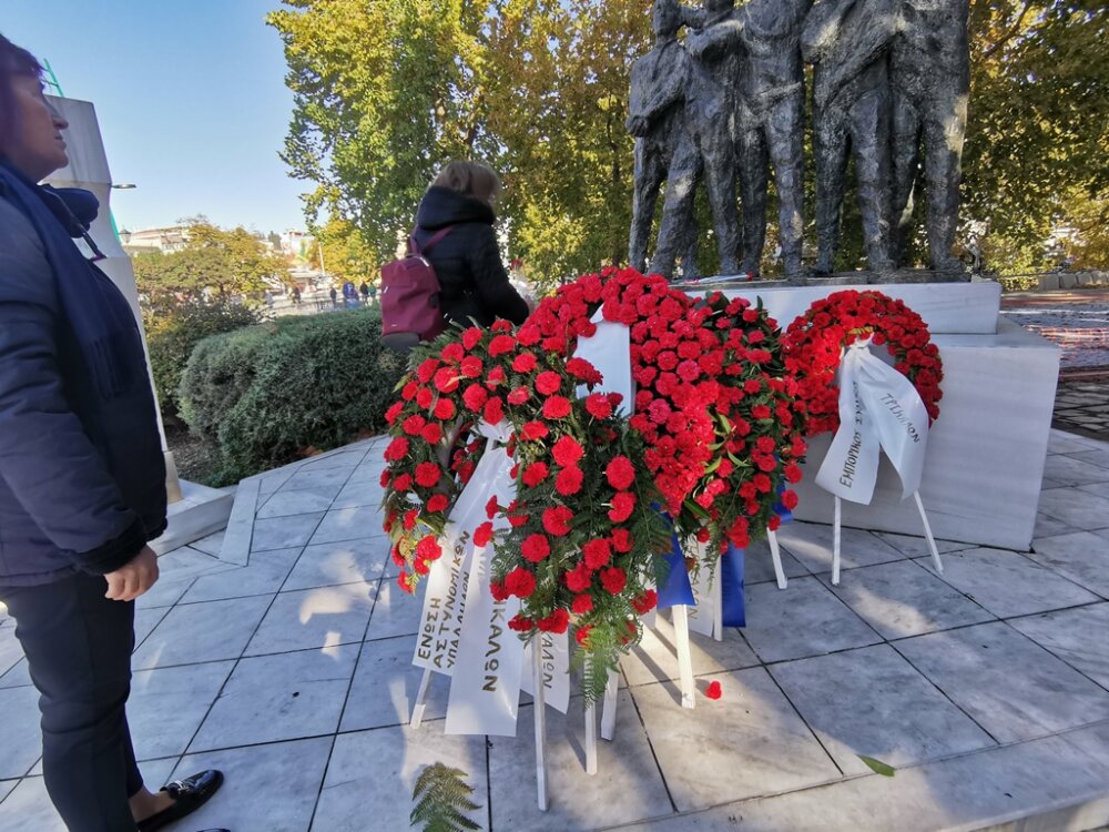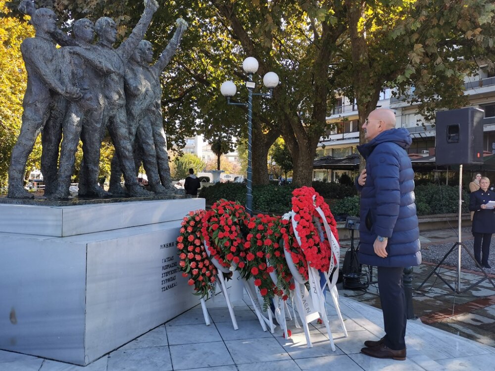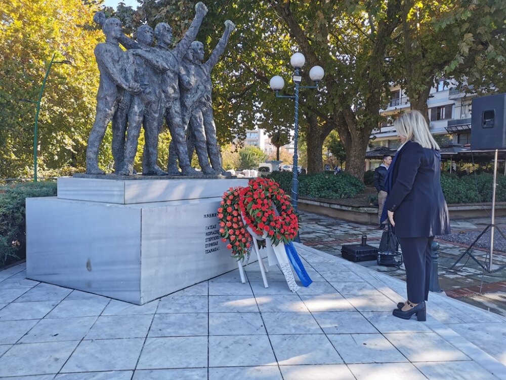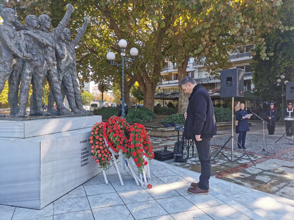 Στεφάνια κατέθεσαν: η βουλεύτρια του ΣΥΡΙΖΑ – ΠΣ Μαρίνα Κοντοτόλη, ο δημαρχεύων, αντιδήμαρχος Ανταποδοτικών Υπηρεσιών Δήμου Τρικκαίων Δημήτρης Παζαΐτης, η αντιπεριφερειάρχης ΠΕ Τρικάλων Χρύσα Ντινή, για τη ΝΕ Τρικάλων του ΣΥΡΙΖΑ – ΠΣ ο γραμματέας κ. Βαγγέλης Κείος, για τη ΝΕ Τρικάλων του ΠΑΣΟΚ – ΚΙΝΑΛ ο γραμματέας κ. Γιάννης Τριγώνης, για τη ΝΕ Τρικάλων του ΤΕΕ ο πρόεδρος κ. Απ. Μπαταβάνης, για το Επιμελητήριο Τρικάλων ο γεν. γραμματέας κ. Θεοδ. Ευθυμίου, για την Ομοσπονδία ΕΒΕ Τρικάλων, ο ταμίας κ. Κυριάκος Παπαθανασίου, για τον Εμπορικό Σύλλογο Τρικάλων ο αντιπρόεδρος κ. Θαν. Φαλτάκας, για την Ενωση Αστυνομικών Υπαλλήλων Τρικάλων ο αν. γεν. γραμματέας κ. Αριστ. Σιακαβάρας.