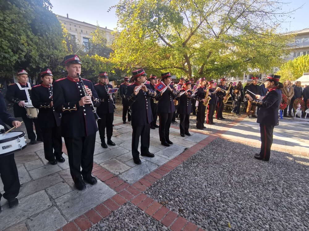 Τον Εθνικό Υμνο παιάνισε η Δημοτική Φιλαρμονική Τρικκαίων υπό τη διεύθυνση της μαέστρου κ. Μαίρης Μητσοπούλου.
