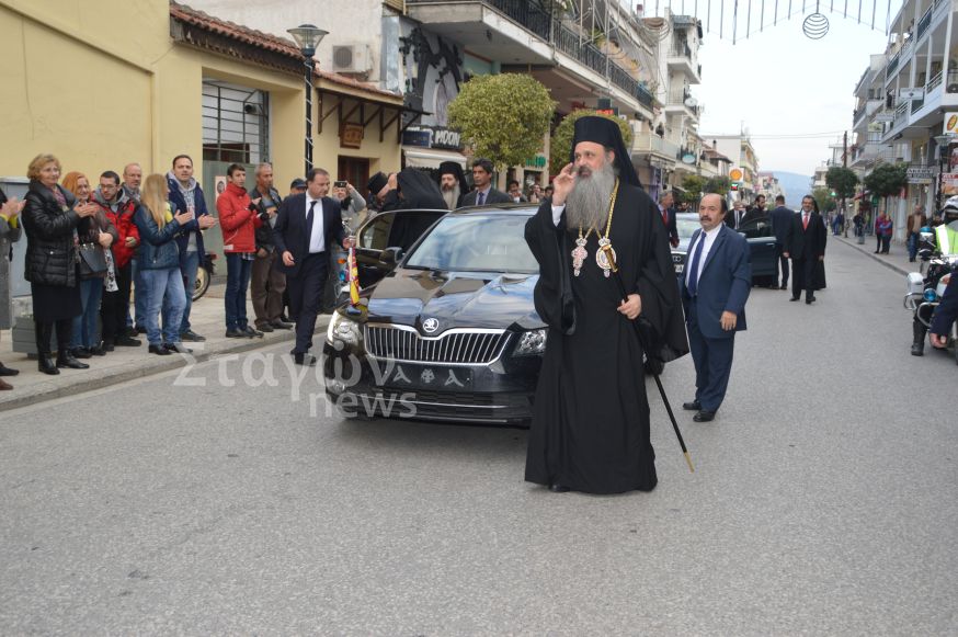 Η υποδοχή του νέου Μητροπολίτου έγινε αρχικά στη Βασιλική Καλαμπάκας και στη συνέχεια κλήρος και λαός τον υποδέχτηκε στη κεντρική πλατεία της Καλαμπάκας ενώ ακολούθησε η τελετή ενθρόνισης στον Ιερό Μητροπολιτικό Ναό του Αγίου Βησσαρίωνος.