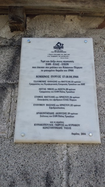 Κατά τη διάρκεια της εκδήλωσης παρουσιάστηκε το χρονικό των γεγονότων που έπαιξαν πρωταγωνιστικό ρόλο πρωτοπόροι του Κομμουνιστικού Κόμματος στα Τρίκαλα, που είχαν γνωρίσει την εξορία της μεταξικής δικτατορίας, όπως ο γραμματέας της αχτίδας υπαίθρου Αντώνης Μπίλλας και ο Βασίλης Πιτσάκος που ήταν σύνδεσμος με οργανώσεις. Στην επίθεση που έγινε όπως και στις εκτελέσεις που ακολούθησαν έπεσαν για τη λευτεριά της πατρίδας οι Στάμος Βαγγέλης, επικεφαλής του ΕΛΑΣ Κ. Πύργου, Ευθυμίου Βασίλης εφεδροελασίτης, Τσουμένης Θανάσης γραμματέας της Π.Ε. Τρικάλων του ΚΚΕ, ο Νίκος Λέγκας γραμματέας του ΕΑΜ Πόλης, ο Διονύσης Δρακονταειδής στέλεχος του ΕΑΜ Πόλης καθώς και δύο κάτοικοι της περιοχής. Κατά την ίδια επιχείρηση των Ναζί πιάστηκαν σε διάφορα σημεία της περιοχής οι πέντε αλύγιστοι ΕΠΟΝίτες Κώστας Σύρμπας, Κώστας Στεργιόπουλος, Γιάννης Μπριάζης, Αποστόλης Τσανάκας και Στέργιος Γάτσας που οδηγήθηκαν στην αγχόνη την ίδια μέρα, 18 Απρίλη, γράφοντας νέες ηρωικές σελίδες στην ιστορία των λαϊκών αγώνων.