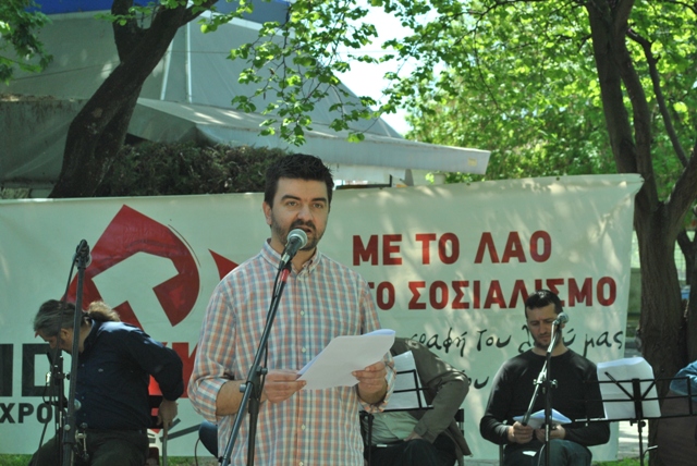 Όπως είπε “ Είμαστε περήφανοι γιατί το κόμμα μας το ΚΚΕ, υπήρξε η ψυχή, οοργανωτής-καθοδηγητής και κύριος αιμοδότης του ΕΑΜ, του ΕΛΑΣ, της ΕΠΟΝ. Είμαστε περήφανοι γιατί ό,τι θετικό έζησε ο λαός στον τόπο μας το κατέκτησε με σκληρούς αγώνες και πάντα σε συμπόρευση με το ΚΚΕ, για σχεδόν εκατό χρόνια πλέον. Με σεβασμό υποκλινόμαστε σε όσους και όσες έδωσαν τη ζωή τους αγωνιζόμενοι για έναν καλύτερο κόσμο. Σε όσους και όσες πάλεψαν ή στήριξαν τους αντάρτες στα πεδία των μαχών, στις πόλεις, στα βουνά, στην παρανομία. Υποκλινόμαστε με σεβασμό σ’ εκείνους και εκείνες που κράτησαν ηρωική στάση με το όπλο στο χέρι ή τα χωνιά και την προκήρυξη, σ’ εκείνους που πήραν μέρος στις διαδηλώσεις, τις απεργίες,τα σαμποτάζ. Αυτούς που συνέχισαν ξανά με το όπλο στο χέρι με το Δημοκρατικό Στρατό Ελλάδας. Εκείνους και εκείνες που διώχτηκαν, φυλακίστηκαν, εξορίστηκαν, που εκτελέστηκαν, έμειναν όμως αλύγιστοι και μας έχουν διδάξει ένα αξιοπρεπές πρότυπο ζωής. Του αφοσιωμένου, αταλάντευτου αγωνιστή για τα λαϊκά συμφέροντα σε όλες τις συνθήκες, του επαναστάτη μέλους του ΚΚΕ”.