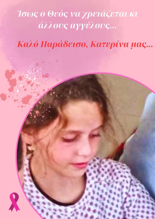 “Κάποιες φορές τα λόγια είναι φτωχά μπροστά σε όσα συμβαίνουν. Η Κατερίνα υπήρξε ένα δυνατό παιδί, που πραγματικά πάλεψε σαν μαχήτρια μέχρι το τέλος. Θα θυμόμαστε για πάντα το χαμόγελο, τη ζωντάνια, την δύναμη και τη θέλησή της για ζωή! Καλό ταξίδι στην γειτονιά των αγγέλων! Εκφράζουμε τα ειλικρινή συλλυπητήριά μας στην οικογένειά της.