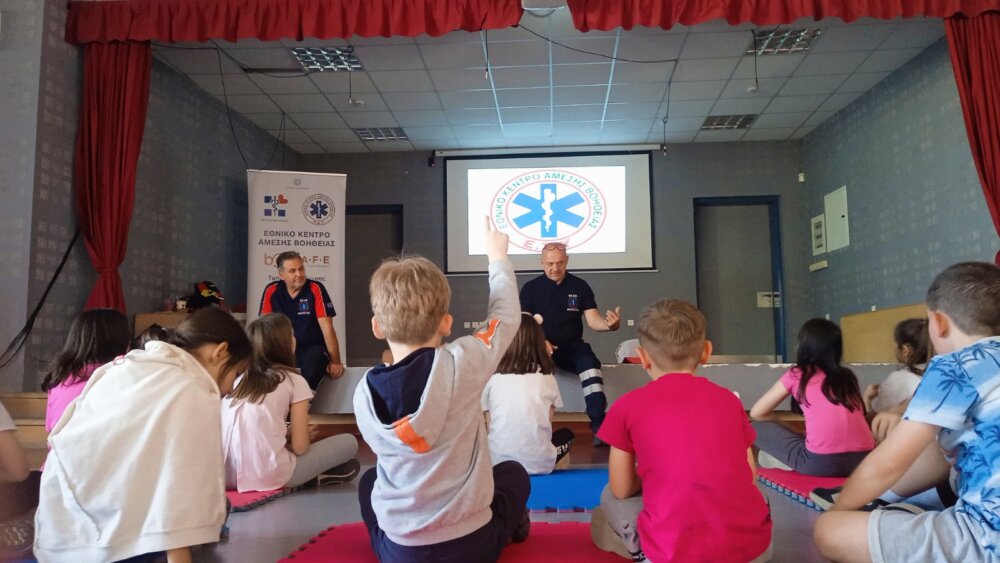 Οι εκπαιδευτές του ΕΚΑΒ μέσα από βιωματικές δράσεις ενίσχυσαν τα αισθήματα ευαισθητοποίησης και αυτοπεποίθησης των παιδιών βάζοντάς τα ένα προς ένα να φέρουν εις πέρας υποθετικά σενάρια τραυματισμών. Βασικός στόχος της διαδραστικής δραστηριότητας ήταν να καταλάβουν τα παιδιά ότι μπορούν να σώσουν μία ζωή χωρίς να είναι υπεράνθρωποι!
