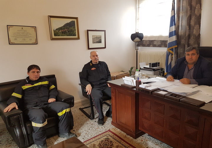 Εθιμοτυπική επίσκεψη είχε ο Δήμαρχος Πύλης κ. Κων/νος Μαράβας στο Γραφείο του στο Δημαρχείο, με τον Διοικητή της Πυροσβεστικής Υπηρεσίας Τρικάλων κ. Αντώνιο Σπανό συνοδευόμενος από τον Προϊστάμενο  του Π.Κ. Πύλης κ. Ιωάννη Τατσίνα, με παρόντα τον Δημοτικό Σύμβουλο κ. Κων/νο Πλαστήρα.