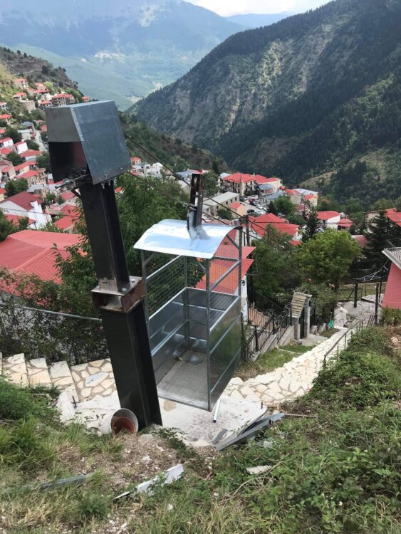 Άλλο τραγελαφικό είναι το τελεφερίκ που έχει τοποθετηθεί από ιδιώτη σε κοινοτικό μέρος, προκειμένου να μεταφέρει αυτός τις αποσκευές στην οικία του……!!!!