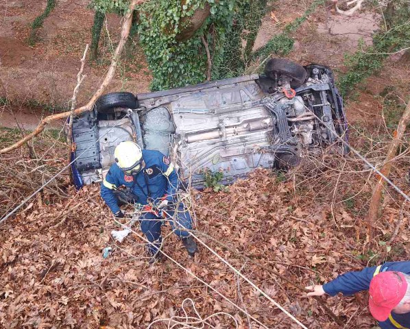 Η επιχείρηση ολοκληρώθηκε λίγο μετά τις 12.30 μ.μ. με τον 75χρονο οδηγό οδηγό και την 70χρονη σύζυγό του να απεγκλωβίζονται και να μεταφέρονται για τις πρώτες βοήθειες.