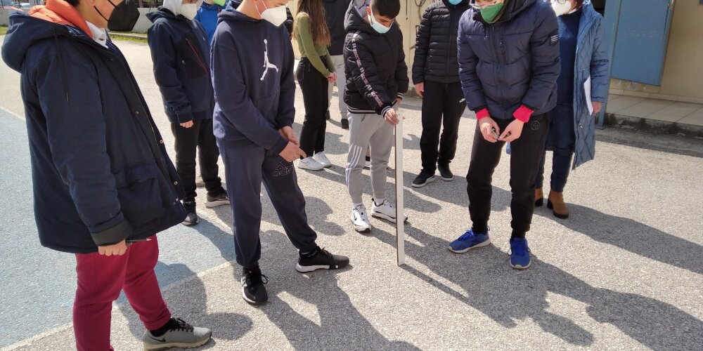 Ομάδες μαθητών/τριών του σχολείου μας στις 12:00 η ώρα μέτρησαν το μήκος της σκιάς