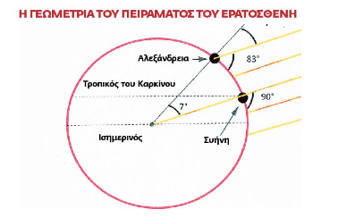 μετρώντας το μήκος της σκιάς σε δύο διαφορετικές πόλεις της αρχαίας Αιγύπτου (Συήνη –