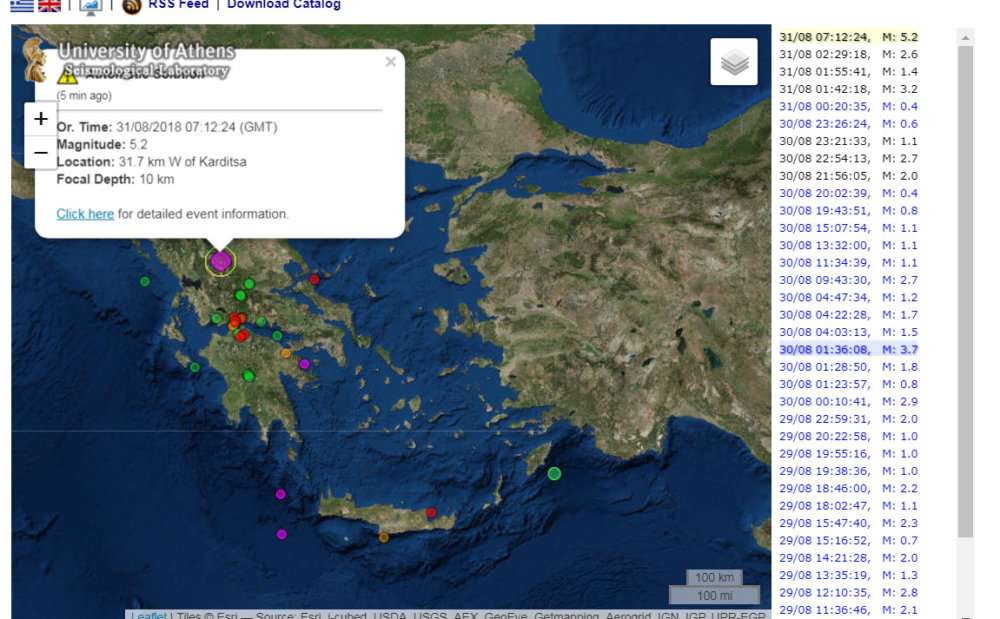 Μεγάλη σεισμική δόνηση ταρακούνησε πριν από λιγα λεπτά τα Τρίκαλα. Οι πρώτες πληροφορίες κάνουν λόγο για 5,2 στα ορεινά της Καρδίτσας
