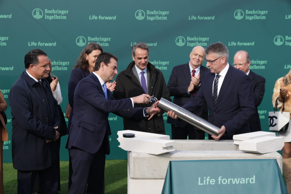 Τον Πρωθυπουργό, Κυριάκο Μητσοτάκη, συνόδευσε σήμερα ο Υπουργός Ανάπτυξης, Κώστας Σκρέκας, στη θεμελίωση της νέας πτέρυγας του εργοστασίου της Παγκόσμιας Φαρμακευτικής Εταιρείας Boehringer Ingelheim.