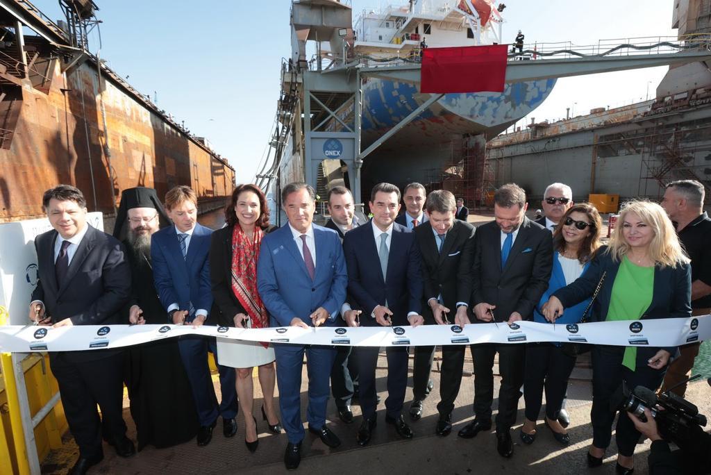 Ο Τρικαλινός Υπουργός Ανάπτυξης, Κώστας Σκρέκας, έκανε την ακόλουθη δήλωση: «Σήμερα ξεκινά ένα από τα σημαντικότερα βήματα στην ανάπτυξη της ναυπηγικής βιομηχανίας της χώρας μας. Η Ελλάδα παράγει με βασικό εφόδιο Έλληνες επιστήμονες και εργαζόμενους με γνώση και ακαδημαϊκά εχέγγυα. Είναι μια μέρα ιστορική, καθώς σηματοδοτεί την αναβίωση των ελληνικών ναυπηγείων, μιας βιομηχανίας ιστορικής που δημιούργησε χιλιάδες θέσεις εργασίας όλα τα προηγούμενα χρόνια και που τώρα με το πάθος του νέου ιδιοκτήτη, κ Πάνου Ξενοκώστα, αλλά και με το όραμα της κυβέρνησής μας και του πρωθυπουργού, Κυριάκου Μητσοτάκη, αναβαθμίζεται και «ανοίγει τα πανιά της» προς νέους δρόμους ανάπτυξης. Η ελληνική ναυπηγοεπισκευαστική ζώνη γίνεται ξανά τροφοδότης παραγωγικών θέσεων εργασίας στη Δυτική Αττική και συμβάλλει στην εθνική οικονομία με στοιχεία βιώσιμης ανάπτυξης. Η Ελλάδα αλλάζει όπως είπε και ο Αισχύλος που γεννήθηκε και μεγάλωσε στην Ελευσίνα ‘’έργω κ’ ουκέτι μύθω’’, δηλαδή με έργα και όχι με λόγια».