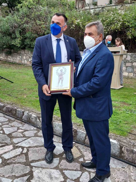 Κατόπιν προσκλήσεως του Δημάρχου Πύλης κ. Κωνσταντίνου Μαραβά και της Τοπικής Κοινότητας Πιαλείας, κλιμάκιο του Σωματείου Ιεροψαλτών Τρικάλων “Ιωάννης ο Δαμασκηνός” έψαλε τους ύμνους κατά την Αρχιερατική Θεία Λειτουργία και την επίσημη Δοξολογία το πρωί της Κυριακής 24 Οκτωβρίου ε. ε. ιερουργούντος του Σεβασμιωτάτου Ποιμενάρχου μας κ. Χρυσοστόμου στον Ιερό Ναό Αγίου Γεωργίου Πιαλείας Τρικάλων. Στη συνέχεια στο μνημειο του πρωτου Έλληνα που έπεσε στον πόλεμο του 1940 Βασιλείου Τσιαβαλιάρη τελέσθηκε επιμνημόσυνη δέηση και ακούστηκαν ομιλίες από τους επίσημους προσκεκλημένους ενώ στεφάνι κατέθεσε μεταξύ άλλων και ο Πρόεδρος του Σωματείου μας, Αθανάσιος Δημητρίου. Λίγο πριν το πέρας της εκδήλωσης ο Δήμαρχος Πύλης, Κωνσταντίνος Μαράβας επέδωσε στο Σωματείο μας αναμνηστικό του ανδριάντα του ήρωα Βασίλη Τσαβαλιάρη.