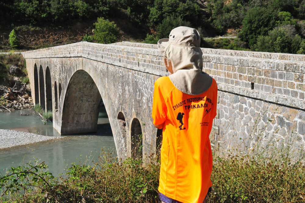 Αφού περάσαμε τον αυχένα του Τυμπάνου κατηφορίσαμε τώρα προς το χωριό Αργιθέα με το μικρό πέτρινο γεφύρι στην αρχή του χωριού. Περνάμε σύντομα από ανάμεσα από τα πέτρινα σπίτια και συνεχίζουμε την πορεία μας προς τον μικρό οικισμό Αγορασιά με μικρή στάση. Σύντομα περνάμε στην απέναντι απότομη πλαγιά της Πυρίνας που κάτω χαμηλά στη ρεματιά βρίσκεται η αρχαιότερη και μεγαλύτερη σε μήκος και σε ύψος τοξωτή πέτρινη γέφυρα της Αργιθέας και όχι μόνο.