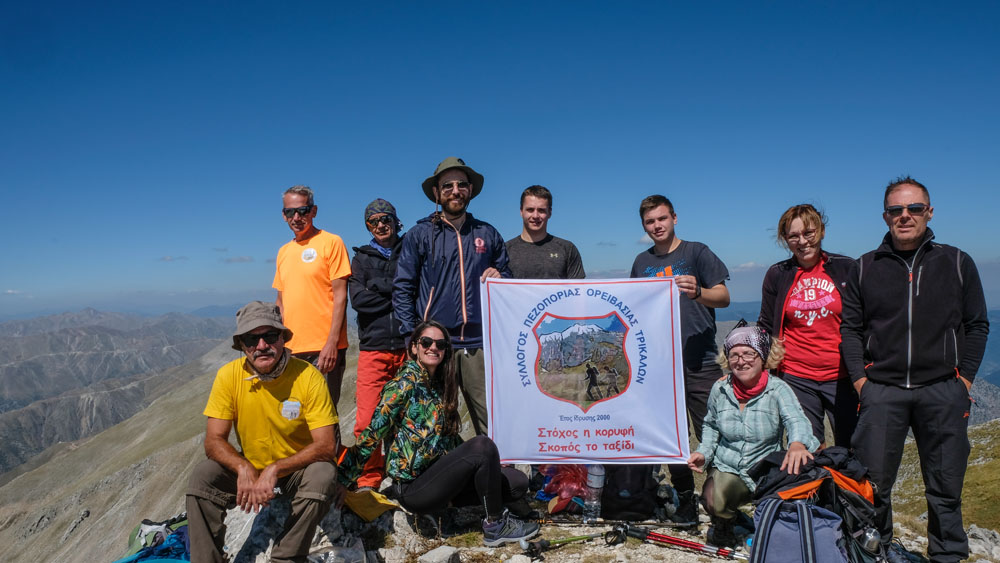 Βαδίζουμε συνέχεια νότια πάνω στη ράχη μέχρι την επιβλητική εμφάνιση της κορυφής μας. Ένα πέτρινο κάστρο, απόρθητο με την πρώτη ματιά. Καθισμένοι αναπαυτικά στο χόρτο μετράμε τις δυνάμεις μας. Ένα σμήνος από 6-7 όρνεα φτερουγίζει παράλληλα με την κορυφογραμμή. Από τους μεγαλύτερους πληθυσμούς που έχουμε παρατηρήσει.