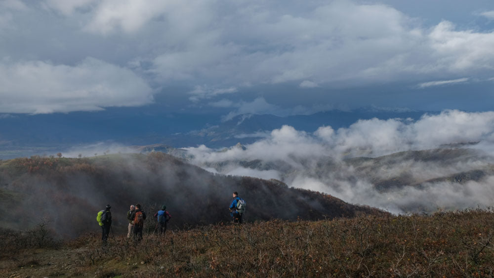 ψηλές χιονισμένες κορυφές του Κόζιακα και της Τριγγίας. Οι πρώτες στάλες της βροχής μας
