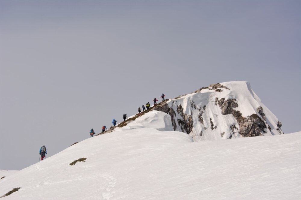 Από τη μύτη της κορφής βλέπεις τα ίχνη που άφησε η ομάδα στο χιόνι. Μια γραμμή που