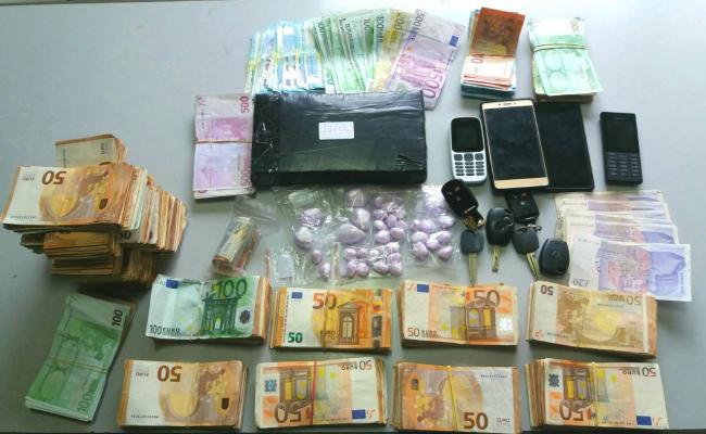 Σε έρευνα που πραγματοποιήθηκε στον 44χρονο βρέθηκε στην κατοχή του το χρηματικό ποσό των σαράντα χιλιάδων εκατόν τριάντα ευρώ (40.130) ευρώ το οποίο προοριζόταν για την αγορά της συγκεκριμένης ποσότητας κοκαΐνης καθώς και δύο (2) συσκευές κινητών τηλεφώνων ως μέσα διευκόλυνσης για την αγοραπωλησίας ναρκωτικών ουσιών. Επιπλέον, στην κατοχή της 32χρονης βρέθηκαν και κατασχέθηκαν δύο κινητά τηλέφωνα και το χρηματικό ποσό των 50 ευρώ.